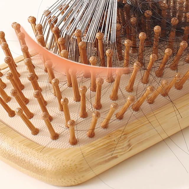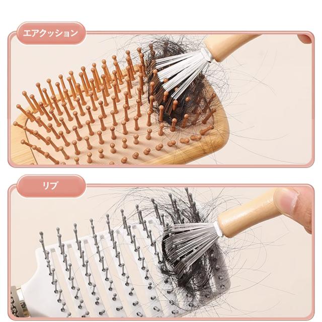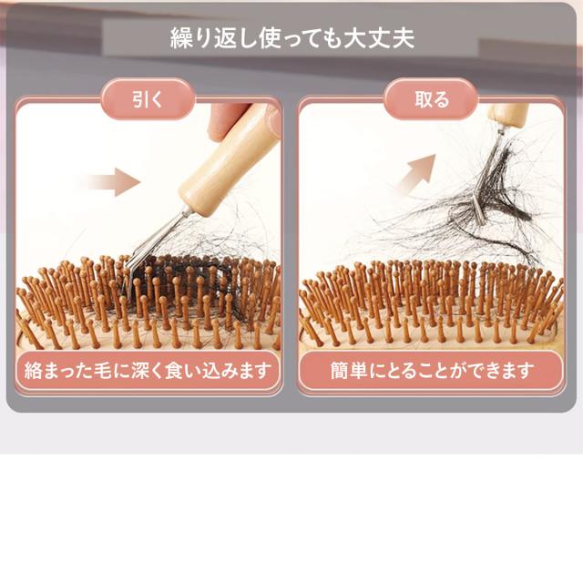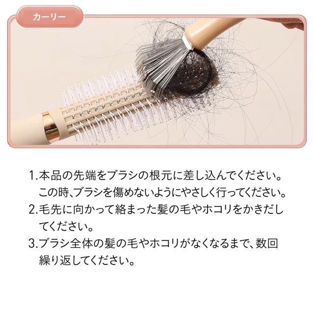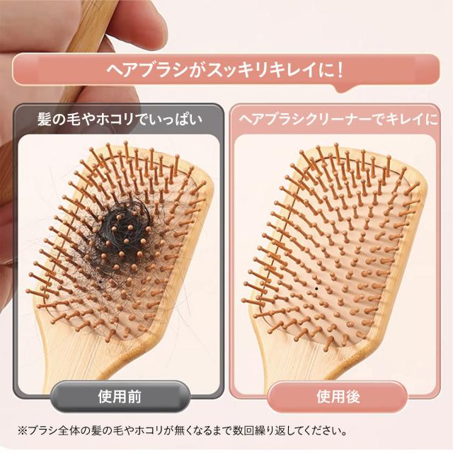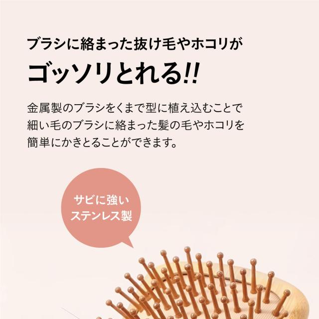 ブラシをくまで型に植え込むことで、細い毛のブラシに絡まった髪に毛やホコリを簡単にかきとることができます。