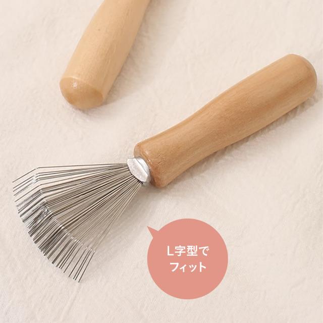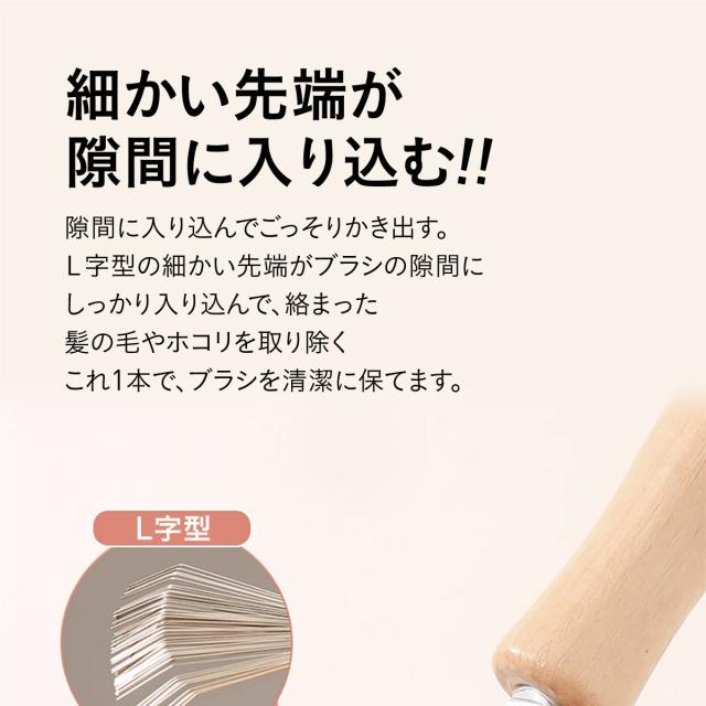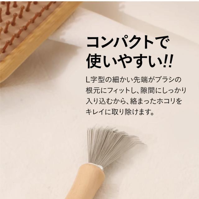 L字型の細かい先端がブラシの根元にフィットし、隙間にしっかり入り込むから、絡まったホコリをキレイに取り除けます。