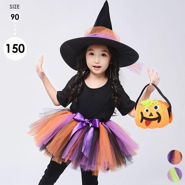 魔女 4点セット ハロウイン コスチューム 子供用 カボチャ 妖精 仮装 舞台 ステージ かわいい ゴスロリ イベント パーティー コスプレ衣装