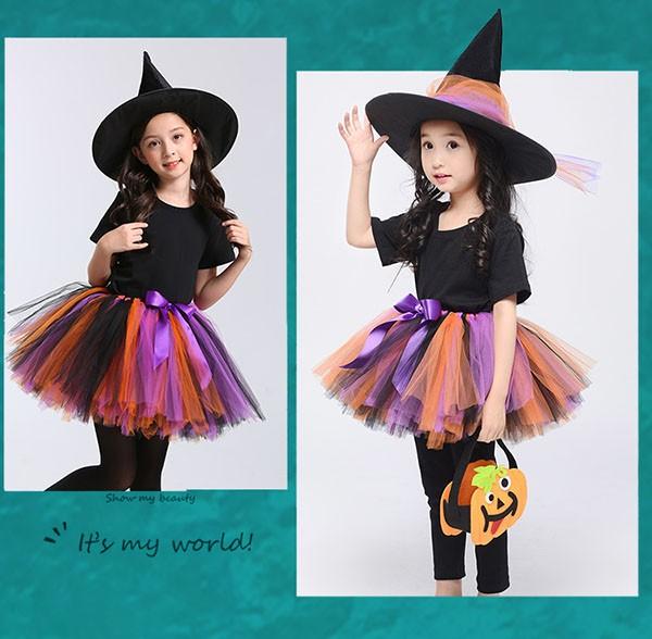 魔女 4点セット ハロウイン コスチューム 子供用 カボチャ 妖精 仮装 舞台 ステージ かわいい ゴスロリ イベント パーティー コスプレ衣装 la267n1n1zr