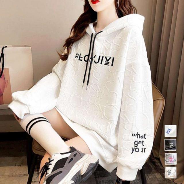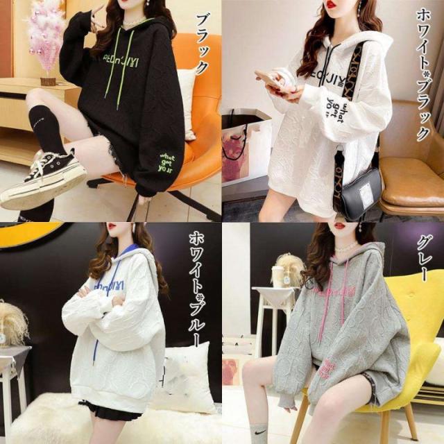 パーカー レディース 大きいサイズ 長袖 刺綉 長袖トレーナー tシャツ フード付き ジャージ スウェット 秋新作