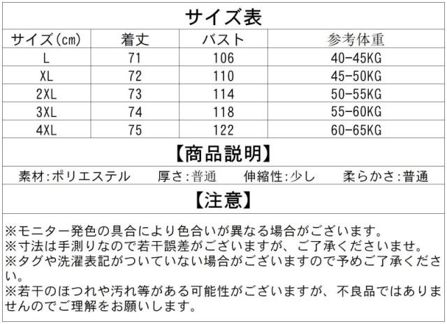 ▼サイズ:L/XL/3XL/4XL(単位:CM)