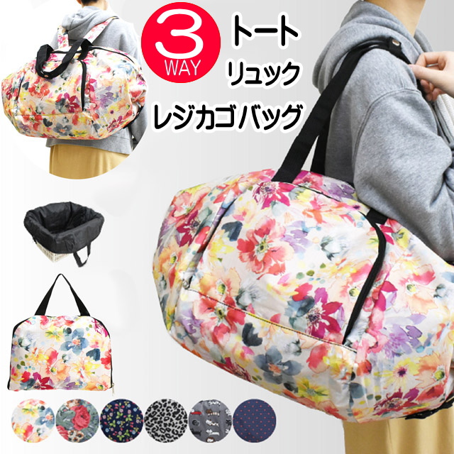 エコバッグ レジカゴ リュック トート 折りたたみ コンパクト 便利 2WAY かわいい おしゃれ ギフト プレゼント ねこ ネコ 猫 花柄