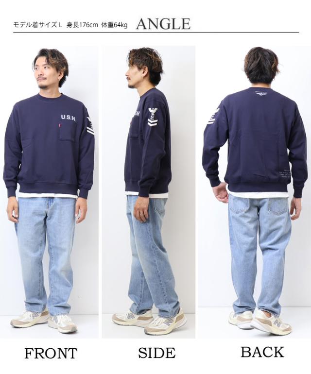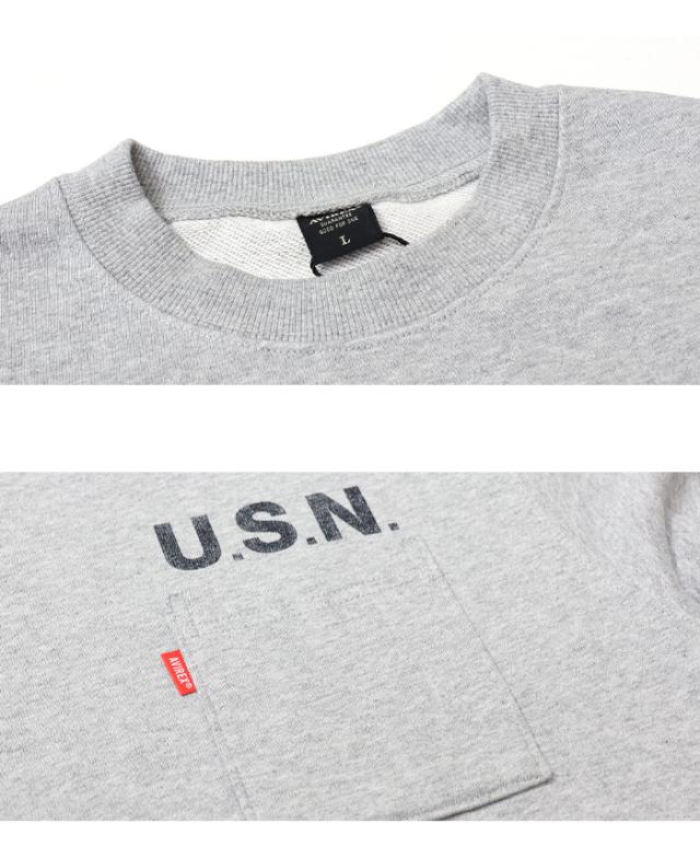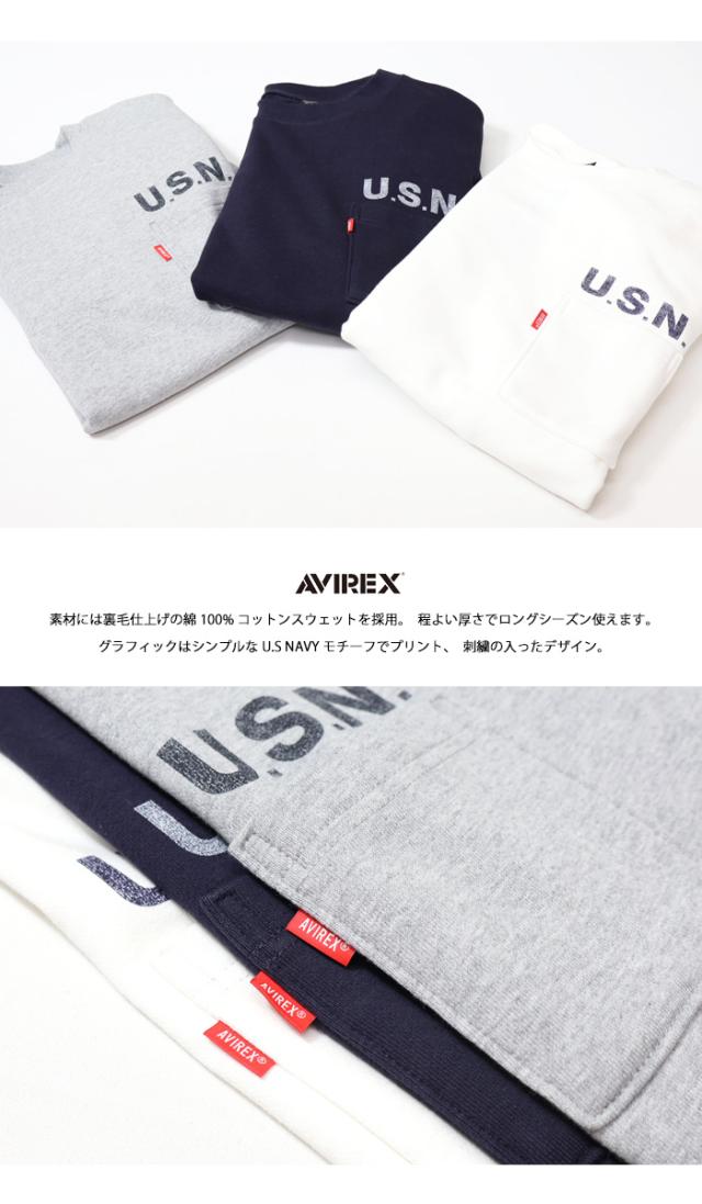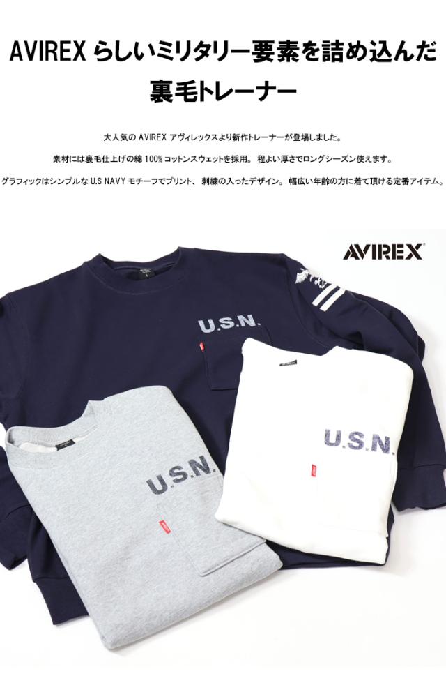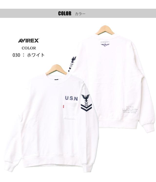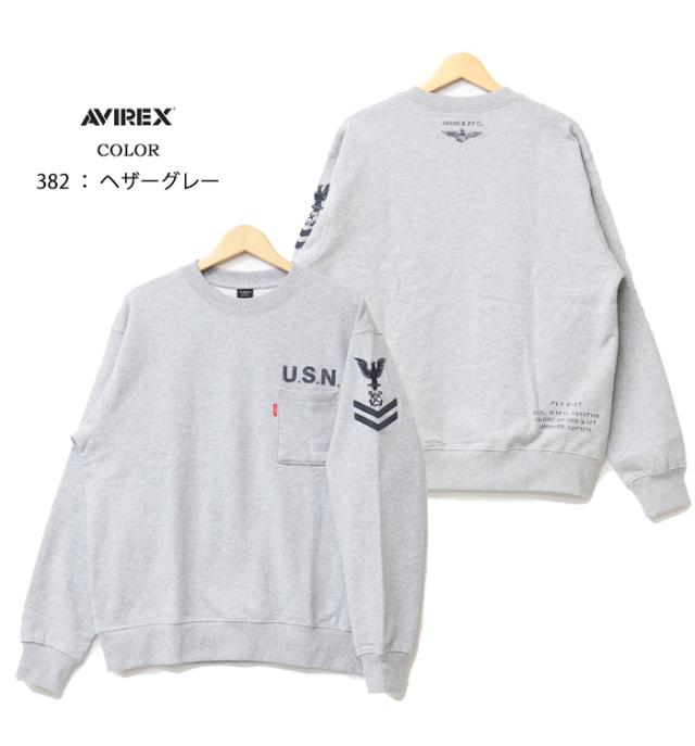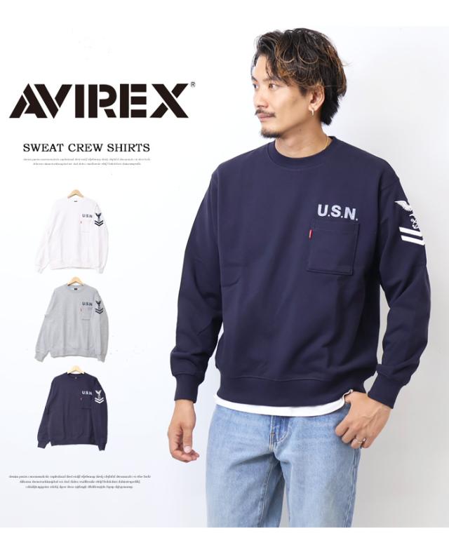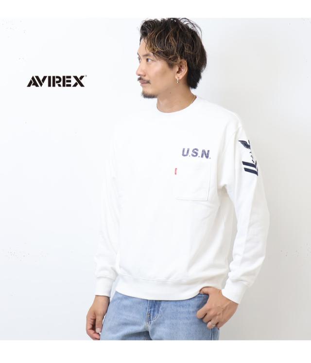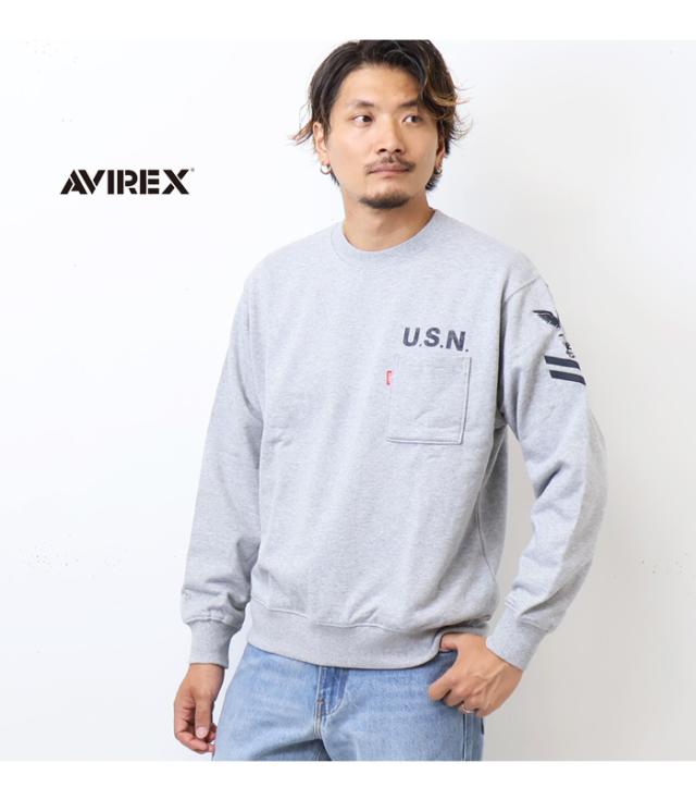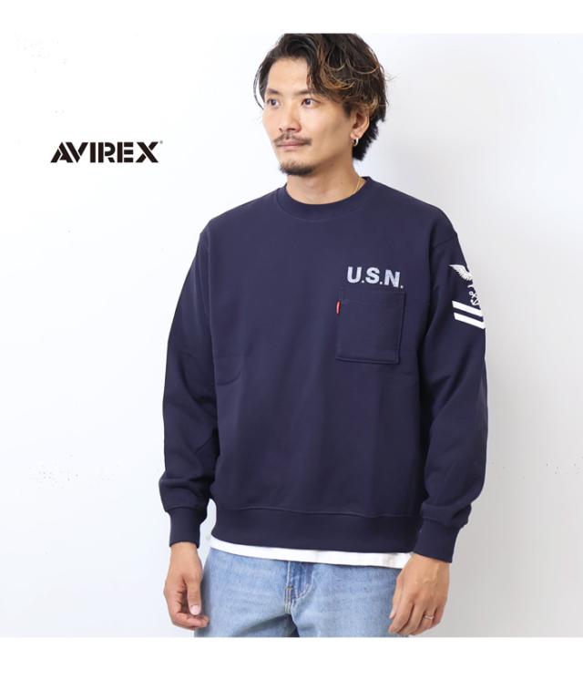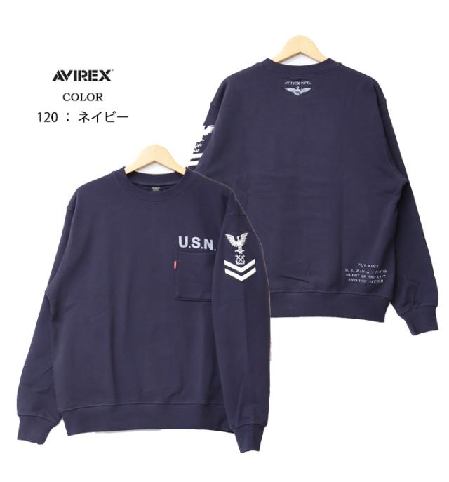 AVIREX アヴィレックス ナバル クルーネックスウェット 裏毛 トレーナー 胸ポケット プリント 刺繍 メンズ アビレックス 送料無料 783-3932005