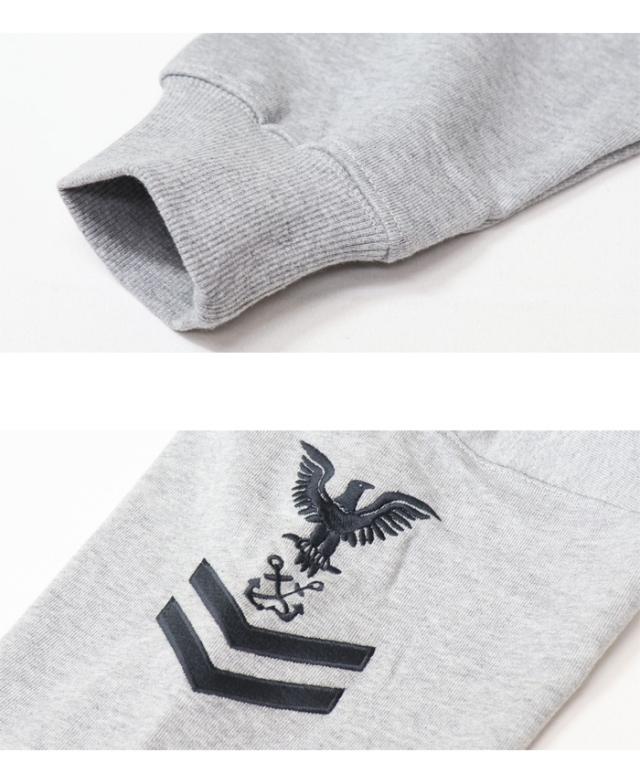 素材には裏毛仕上げの綿100%コットンスウェットを採用。程よい厚さでロングシーズン使えます。グラフィックはシンプルなU.S NAVYモチーフでプリント、刺繍の入ったデザイン。幅広い年齢の方に着て頂ける定番アイテムです。