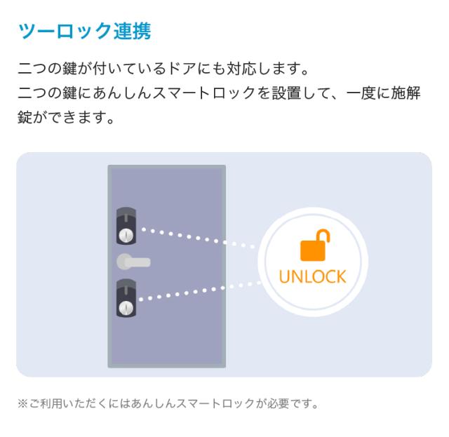 スマートフォンでおうちの鍵を施解錠できるスマートロック。スマートフォンで鍵の開閉状態、開閉履歴を確認。鍵に近づくだけで自動解錠も可能です。ドアの色にあわせ選べる2色(黒、白)。両面テープでかんたんに設置、取り外し可能。(別途あんしんスマートロックが必要)