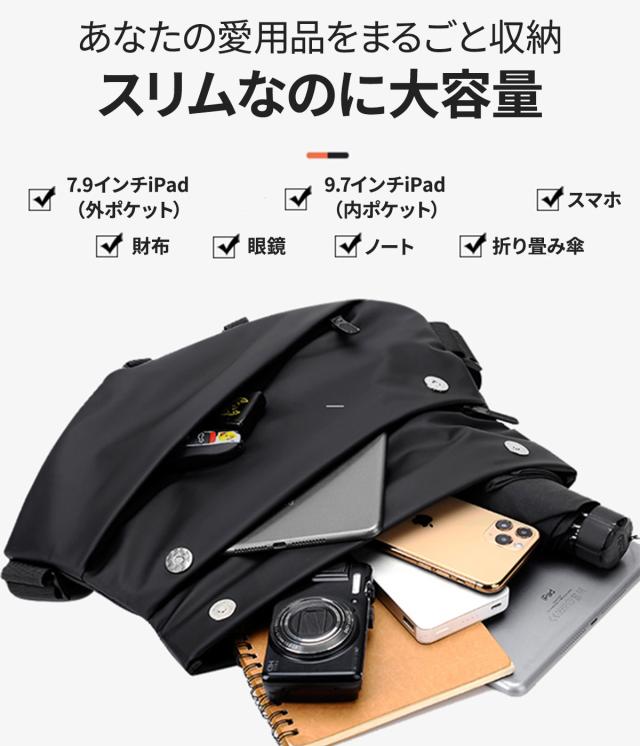 GOODA掲載 ボディバッグ メンズ 大容量 50代 防水 40代 iPad収納 きれいめ ブランド おしゃれ 2Way ショルダーバッグ ワンショルダーバッグ