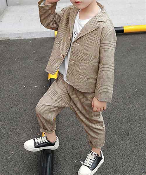 キッズ セットアップスーツ チェック柄シングルジャケット+パンツ 上下2点セット