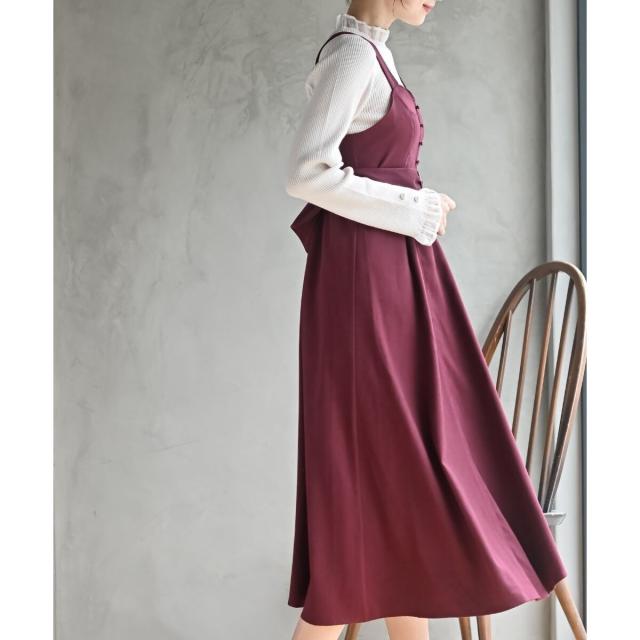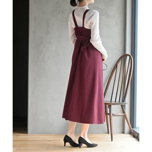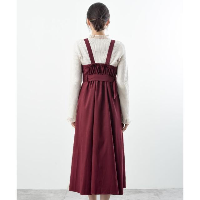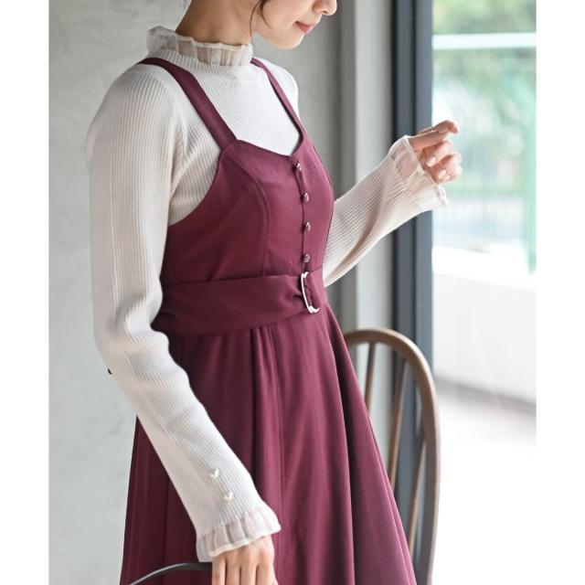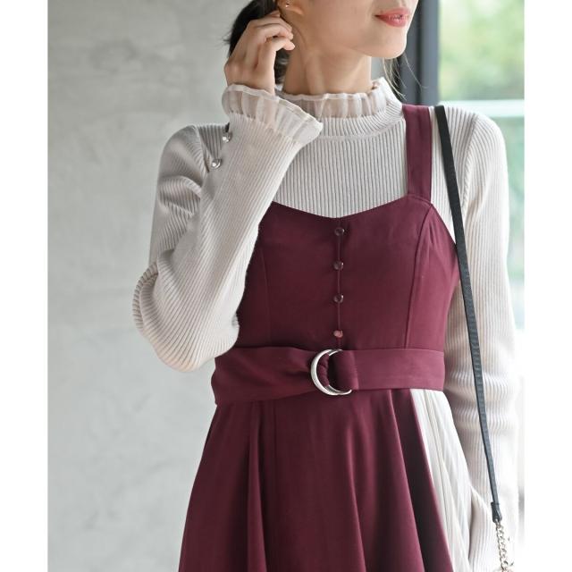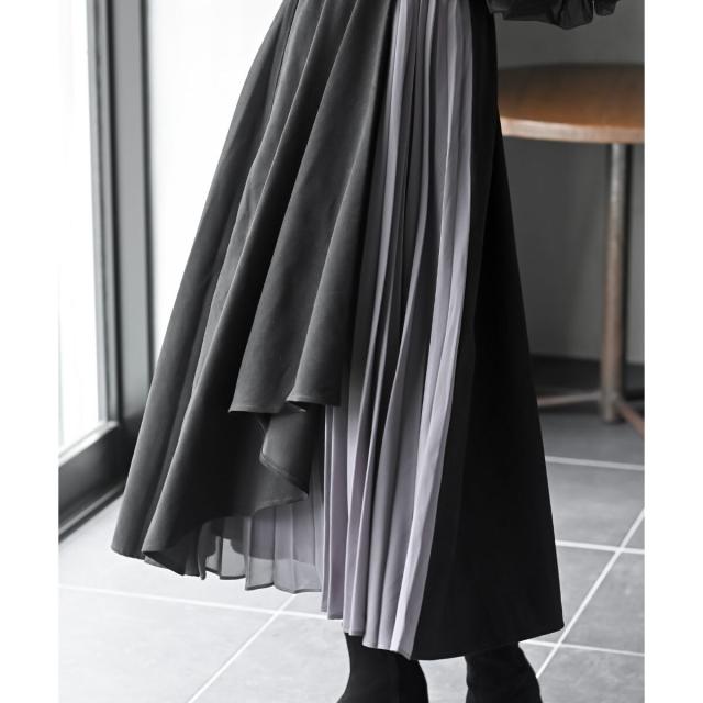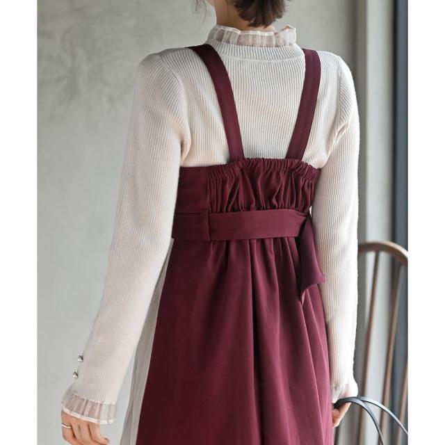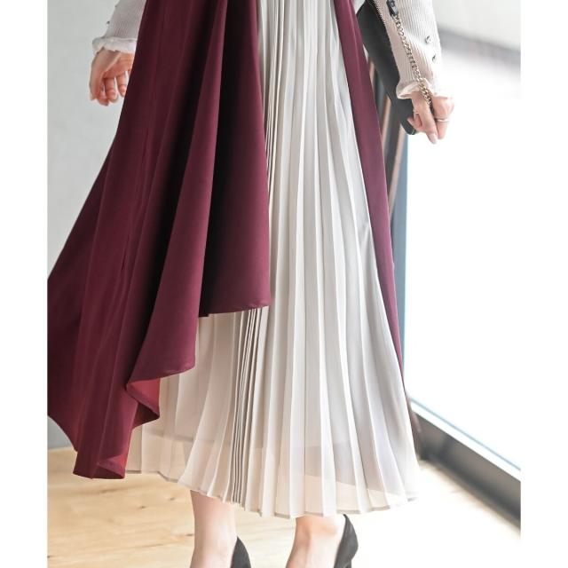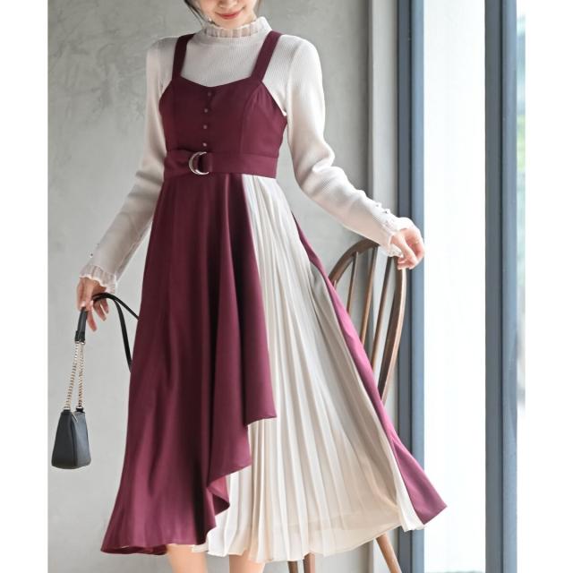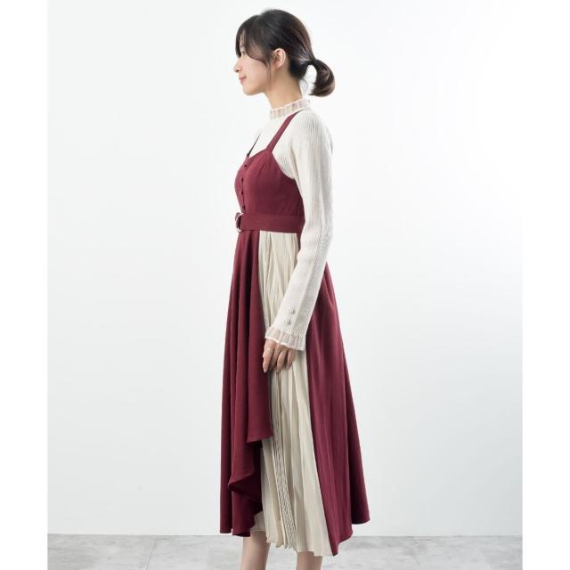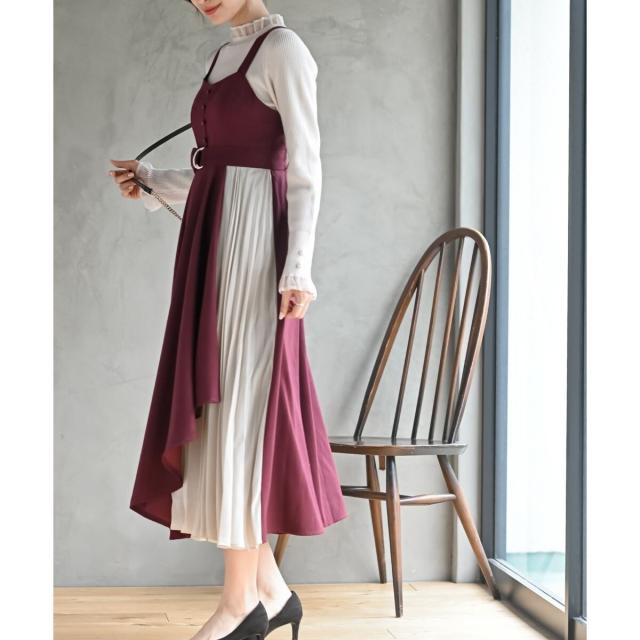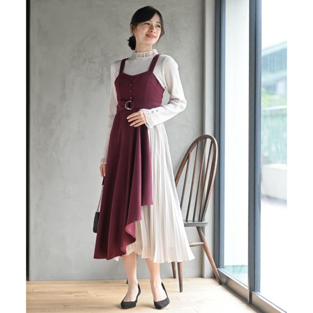 シフォンプリーツをのぞかせたアシンメトリーなジャンスカワンピ。