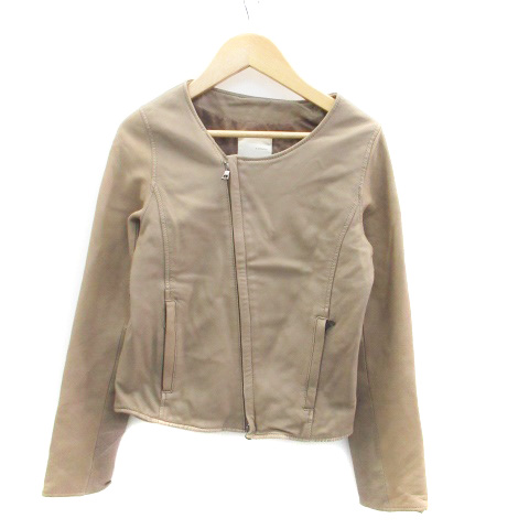 【中古】ステュディオス ライダースジャケット レザージャケット 革ジャン ノーカラー ショート丈 0 茶色 レディース