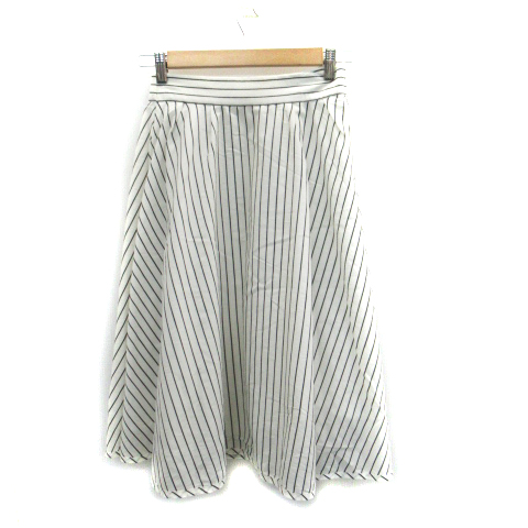 【中古】マーキュリーデュオ フレアスカート ミモレ丈 ダイアゴナルストライプ柄 リネン混 F 白 黒 レディース