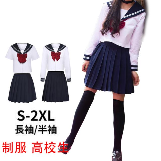 コスプレ セーラー服 コスプレ 本格 白色 5サイズ 制服 学生服 JK 女子高生 赤いリボン 二本線 大きいサイズ