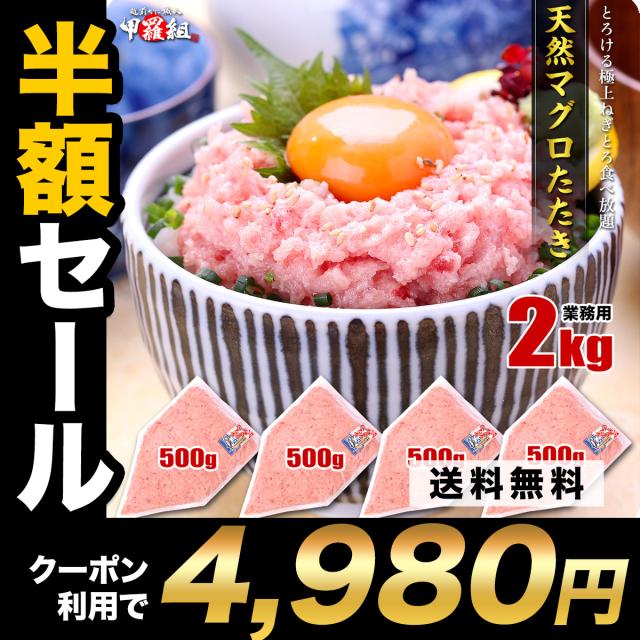 【半額クーポンで⇒4,980円】とろける 極上ねぎとろ 業務用たっぷり2kg(500g×4パック) 約20人前 食べ放題♪ ネギトロ まぐろ たたき マグロ タタキ ギフト