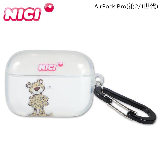 耐衝撃に優れたNICIのAirPods Pro Case。ポリカーボネートでできていて軽く、付属のカラビナでバッグやベルトループにつけておくことができます。クリアケースにかわいい人気キャラクター「レパード」がプリントされています。ワイヤレス充電できるよう隙間が開いているデザインになっています。