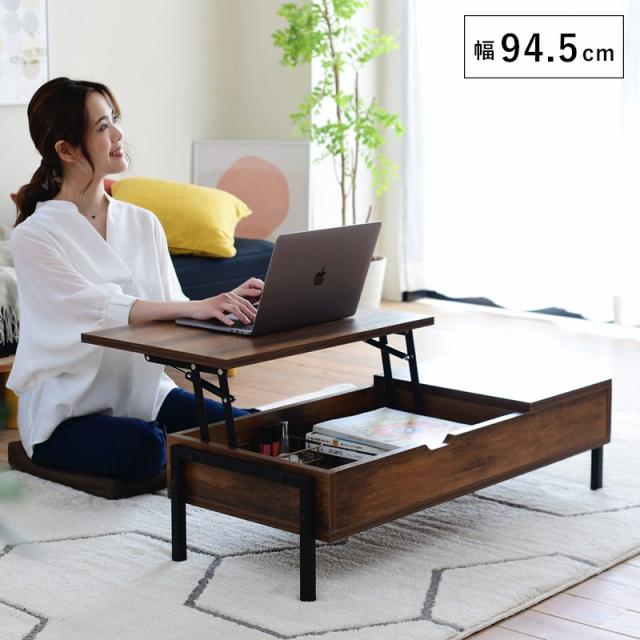 リフティングテーブル 昇降式テーブル ロータイプ インダストリアル 幅94.5 高さ26から40 奥行40から64.5 おしゃれ リモートワーク リフトアップテーブル elvis