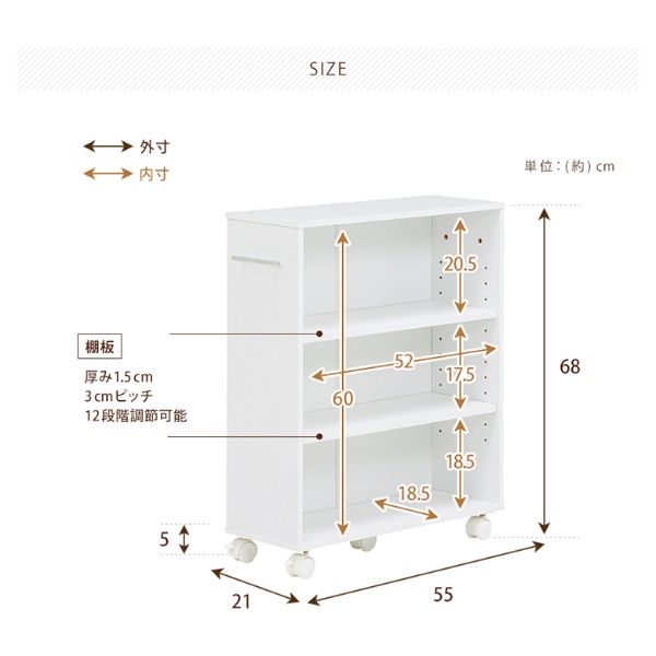 ■サイズ:(約)幅55×奥行21×高さ68cm