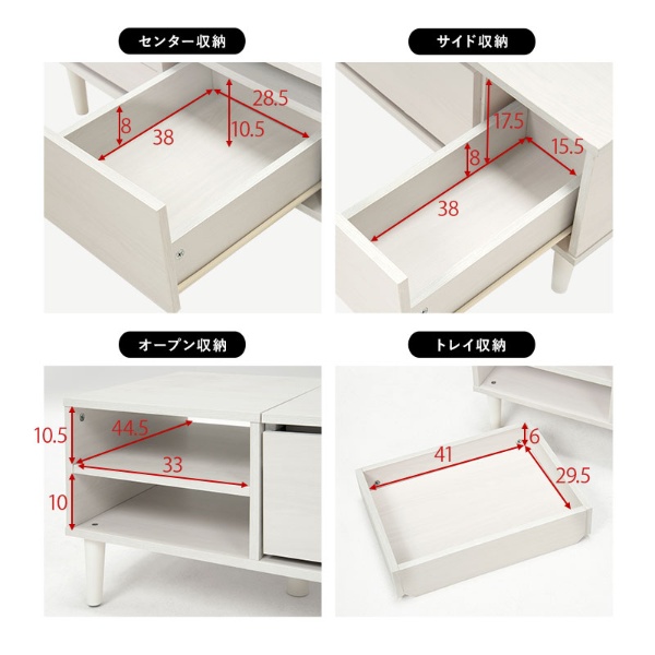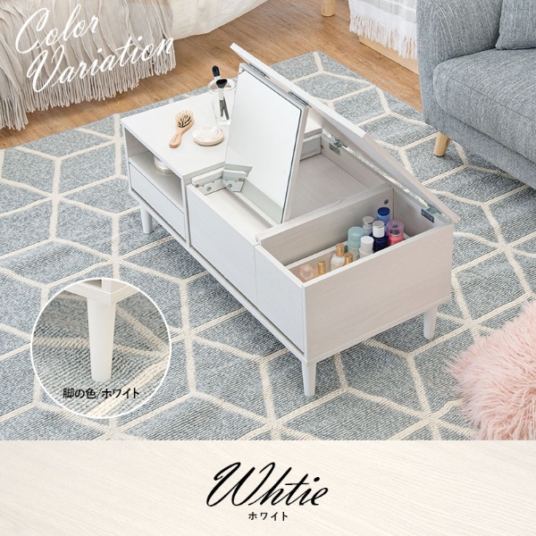 天板を開ければドレッサーとして使えるセンターテーブル。幅95cm。