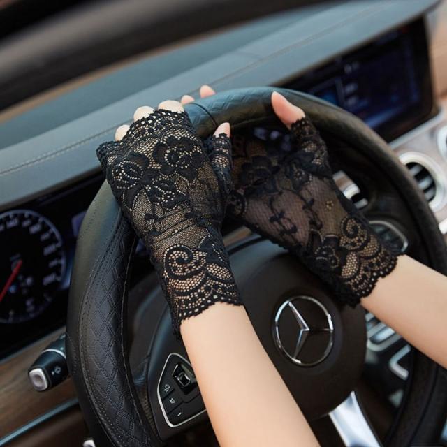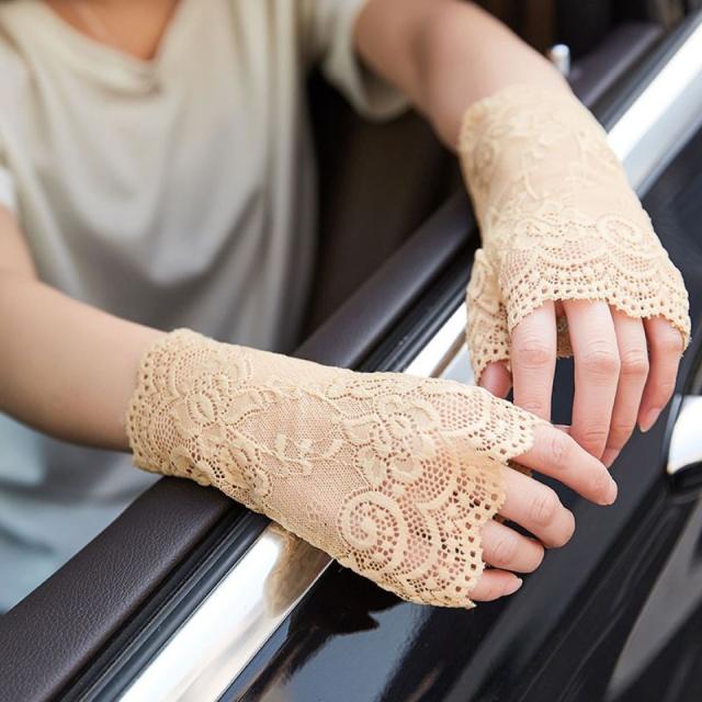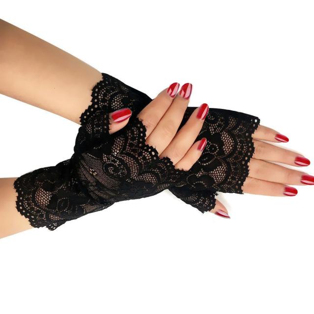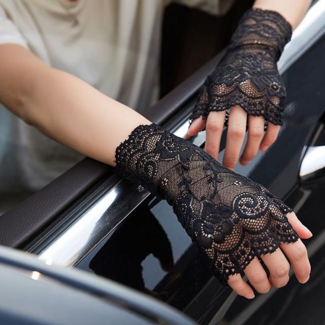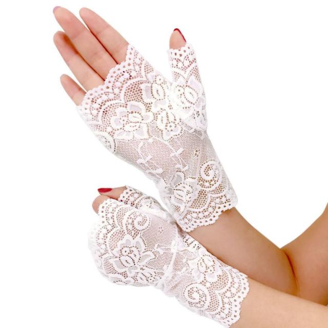 レース手袋 アームカバー レディース レース 花柄 ショート 親指つき 指無し 超薄手 紫外線対策 日焼け止め 夏用 おしゃれ きれいめ