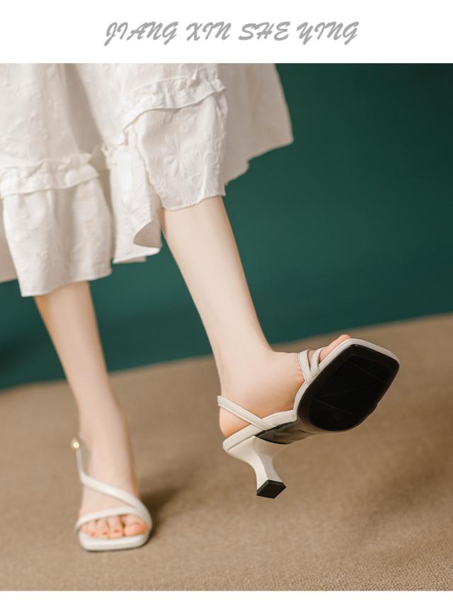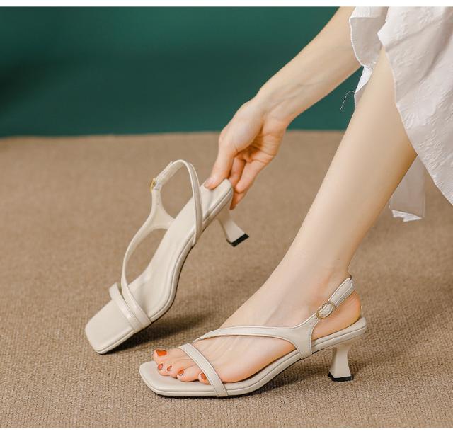 サンダル レディース スクエアトゥ 細ストラップ ミュール ヒール 通勤 オフィス 痛くない 脱げにくい 歩きやすい 美脚 シンプル 滑り止め お洒落