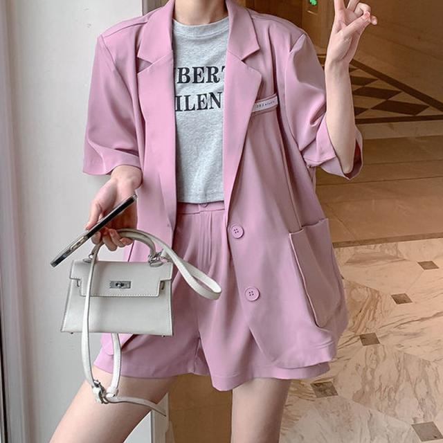 セットアップ レディース スーツセット テーラードジャケット ショートパンツ 夏物 着痩せ カジュアル ゆったり 体型カバー お洒落 薄手 通勤 普段着