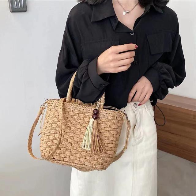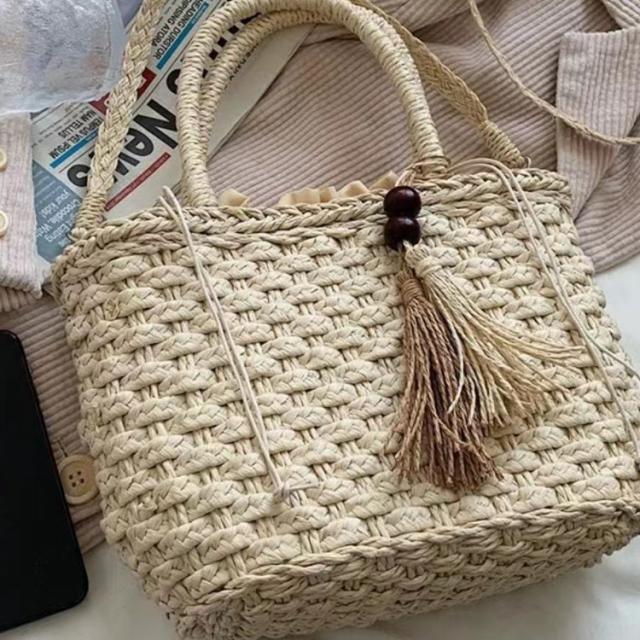 かごバッグ ショルダー 斜めがけ 手提げ 両用 透かし編み 浴衣バッグ 普段 内袋付き 巾着式 パール フリンジ ハンドバッグ レディース