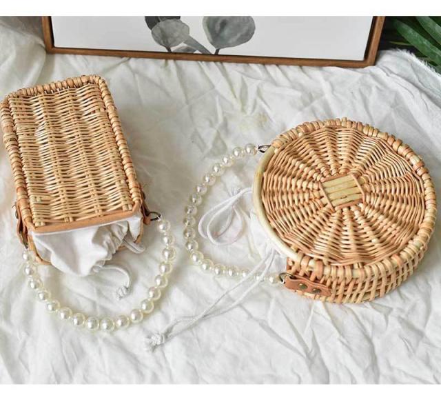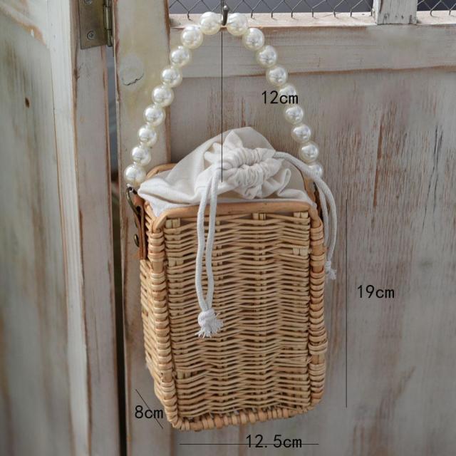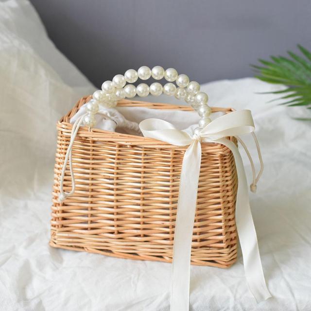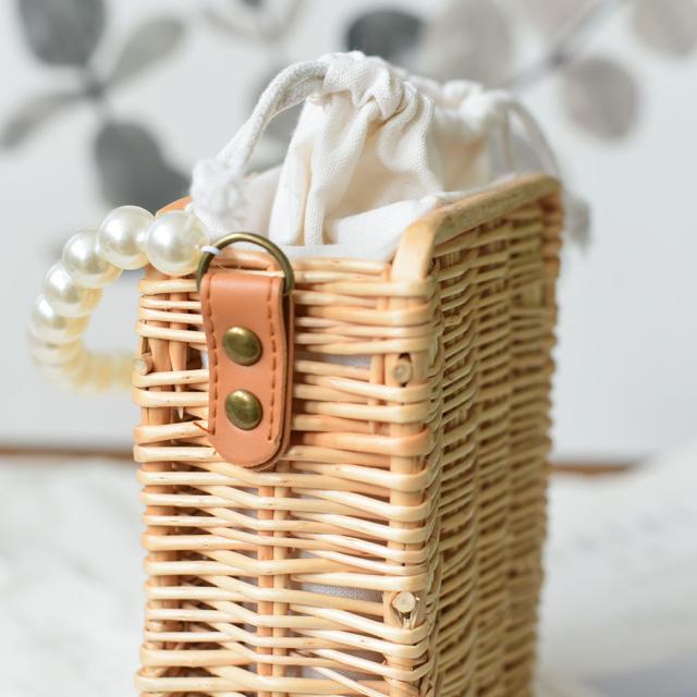 かごバッグ 浴衣 内袋付き 巾着 パール パールハンドル ショルダー 斜めがけ カゴバッグ 手作り ヤナギ 編込み 巾着バッグ サマーバッグ