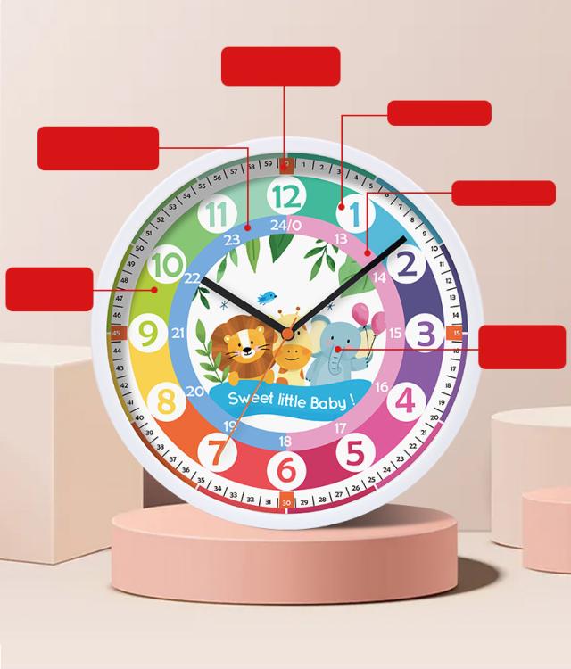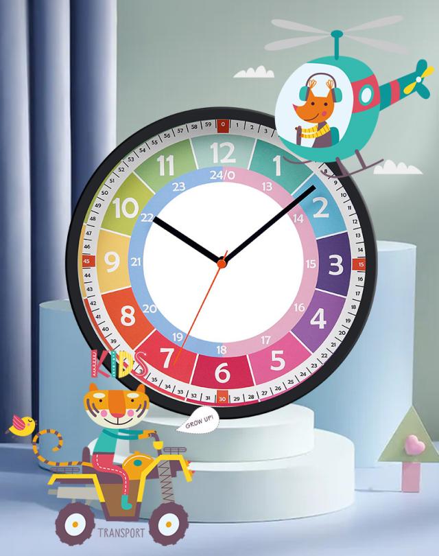 知育時計 時間学習 壁掛け時計 学習時計 子供用 掛け時計 24時間表示 カラフル アナログ 静音 インテリア リビング 保育園 幼稚園 子供部屋 お洒落