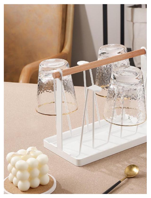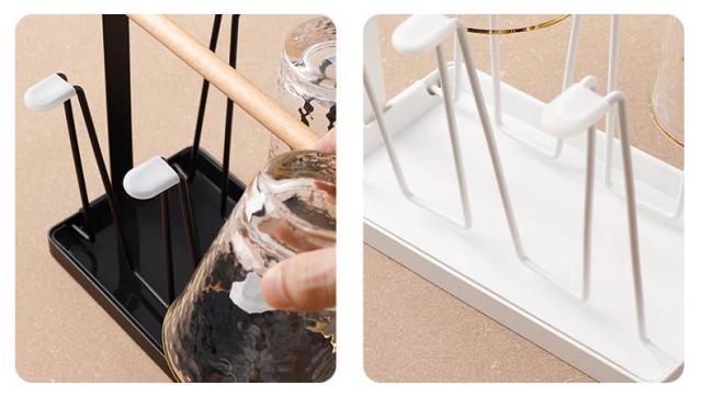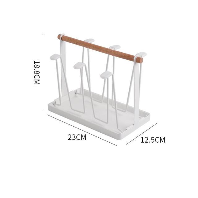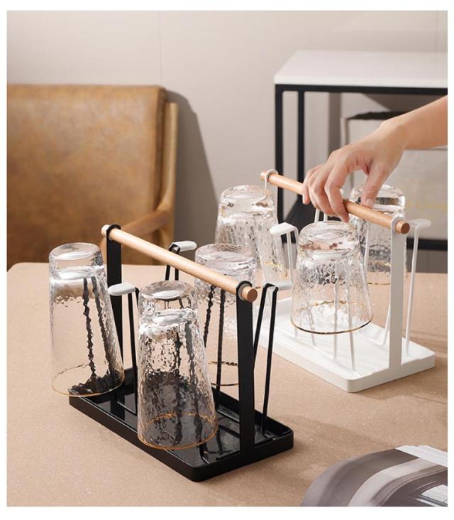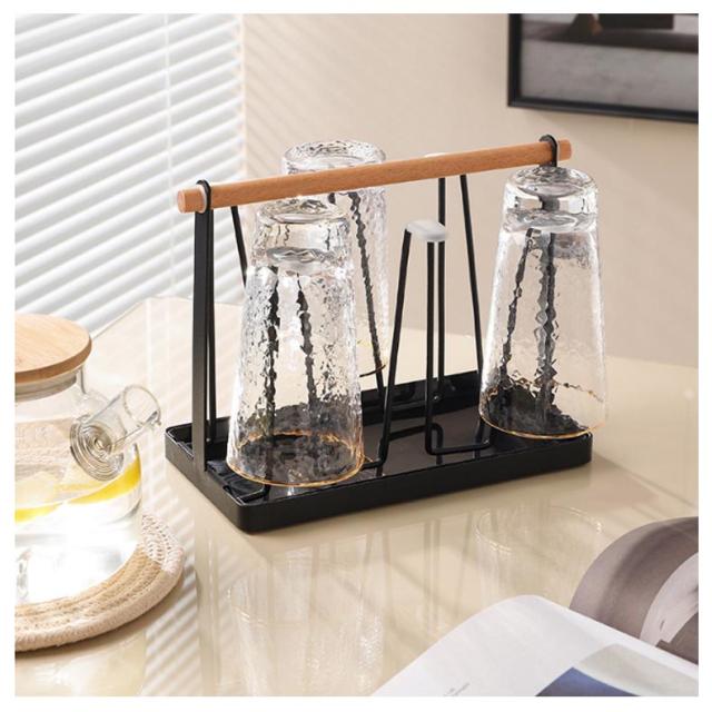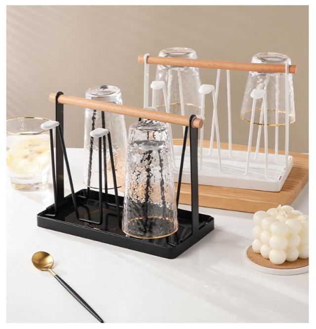 収納ラック グラスホルダー 水切りスタンド キッチン収納 一体型 コップ収納 キッチン雑貨 おしゃれ 北欧 シンプル 水回り 整理 木 スチール 丈夫 滑り止め