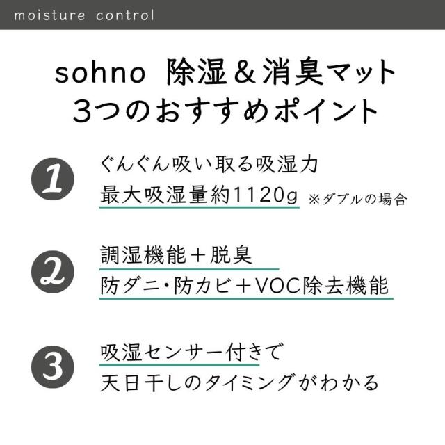 sohnoソーノ 除湿・消臭マット ダブル クイーン B型シリカゲル使用 干し時サインセンサー付き 繰り返し使用可能!