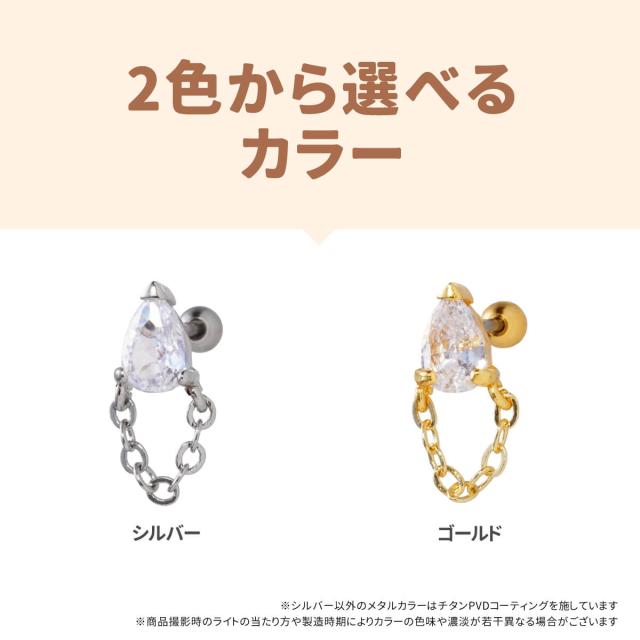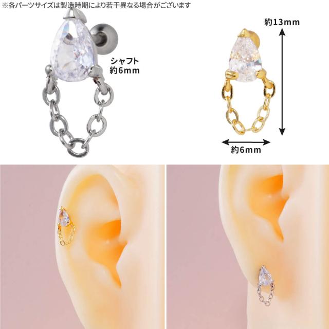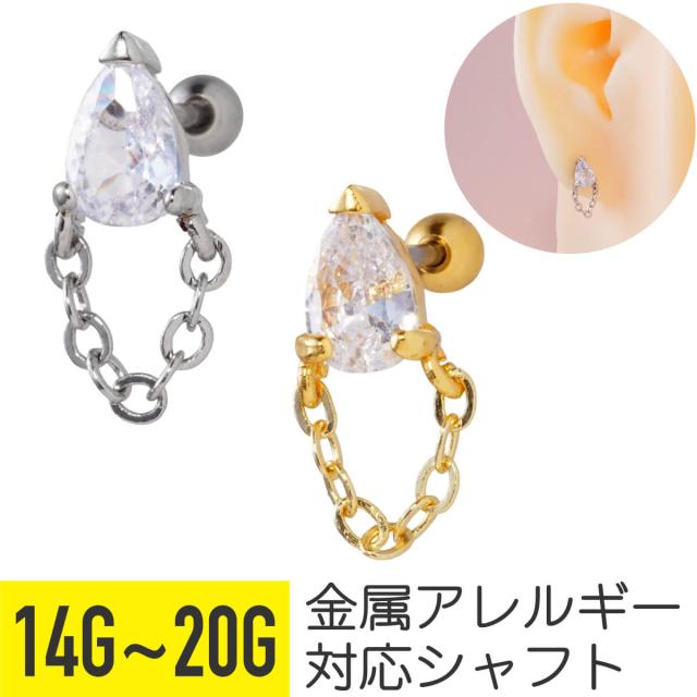 ティアドロップ チェーン ストレートバーベル 14G 16G 18G 20G サージカルステンレス ジルコニア ヘリックス 軟骨ピアス ボディピアス