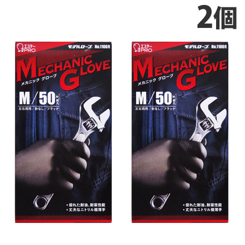 エステー モデルローブ メカニックグローブ ブラック Mサイズ 50枚入×2個 作業用手袋 ニトリル手袋 作業用 手袋 丈夫 油作業 機械