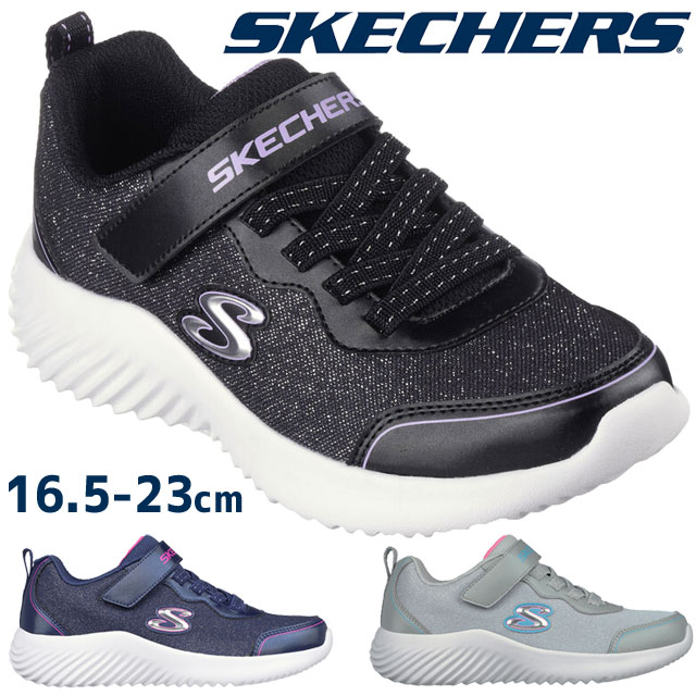送料無料 スニーカー ローカット キッズ ジュニア 女の子 FW 秋冬 新作 秋新作 冬新作 人気 流行 定番 2023 SKECHERS - 303528L スケッチャーズ 子供靴 バウンダー ガーリー グルーヴ ブラック グレー ネイビー ベルクロ