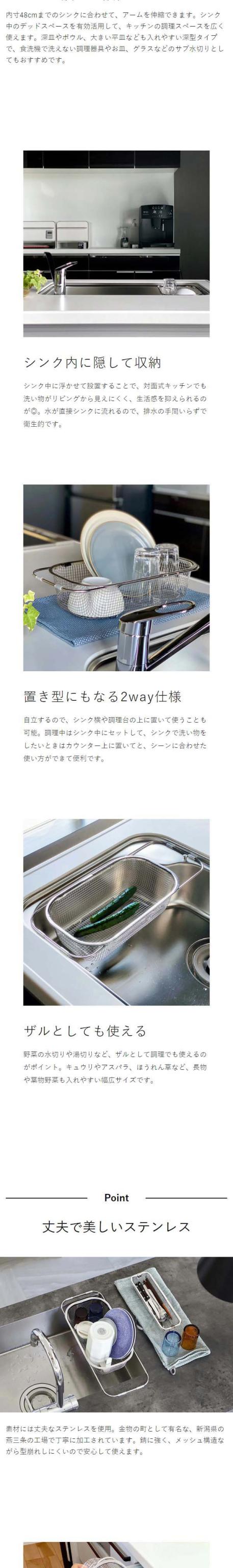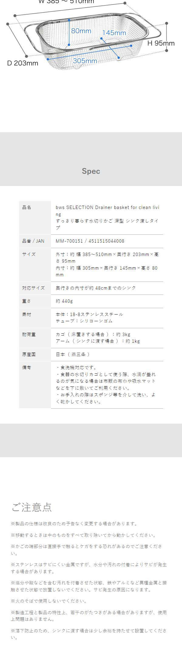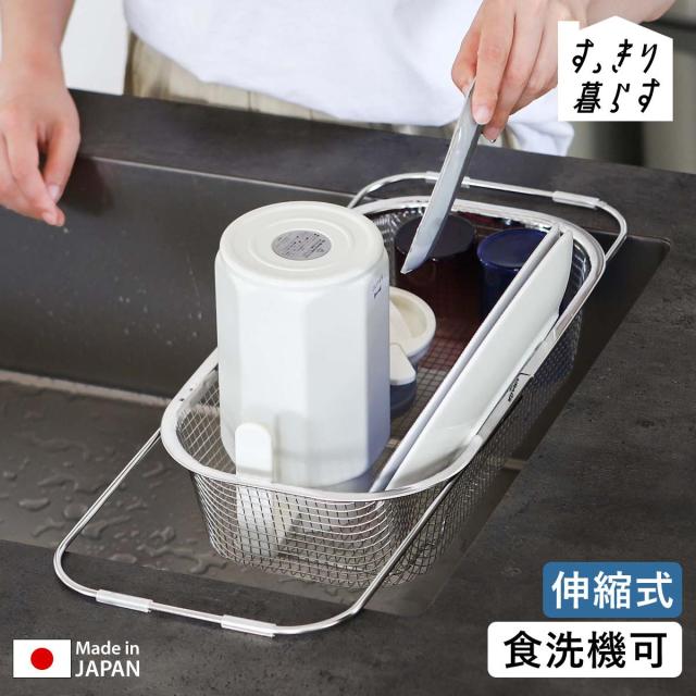 [ bws SELECTION すっきり暮らす水切りかご 深型 シンク渡しタイプ ]水切りカゴ 水切りラック ステンレス 食洗機対応 洗い物かご 伸縮 洗い物カゴ バスケット 水切り ザル ざる キッチン 台所 収納 シンプル 日本製 燕三条 ビーワーススタイル MM-700151
