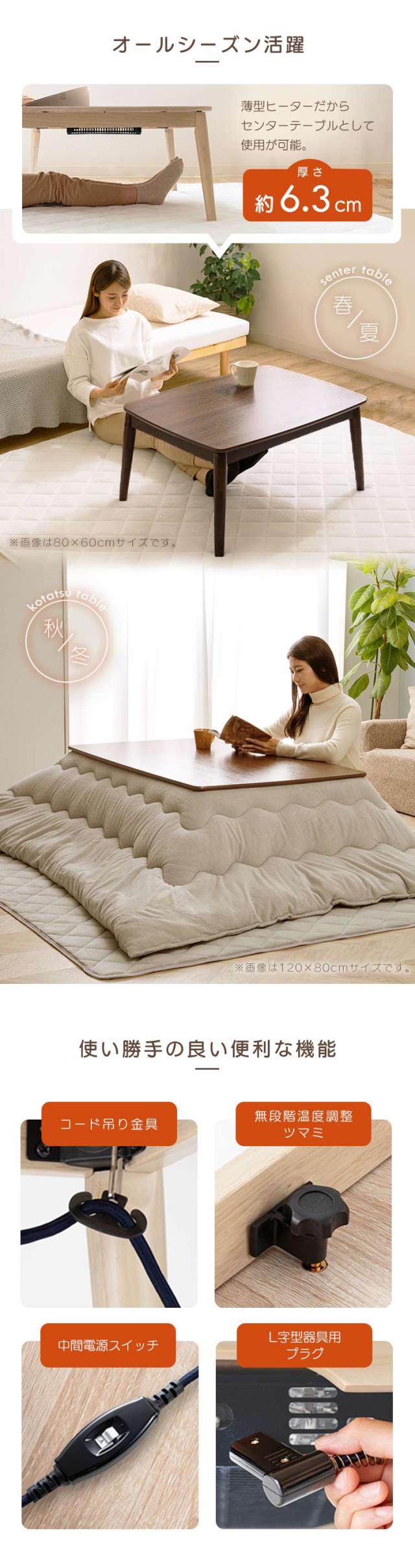 冬はこたつ、夏はテーブルとして1年中使えるシンプルデザインのリビングこたつです。