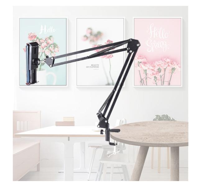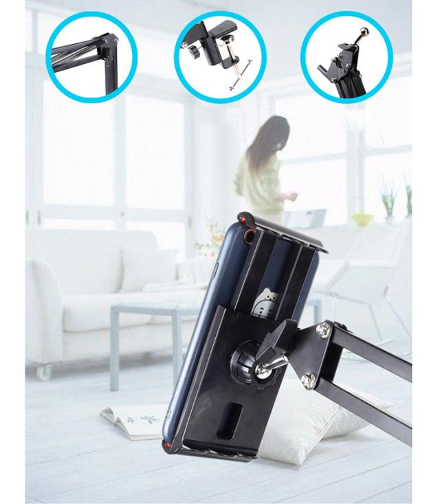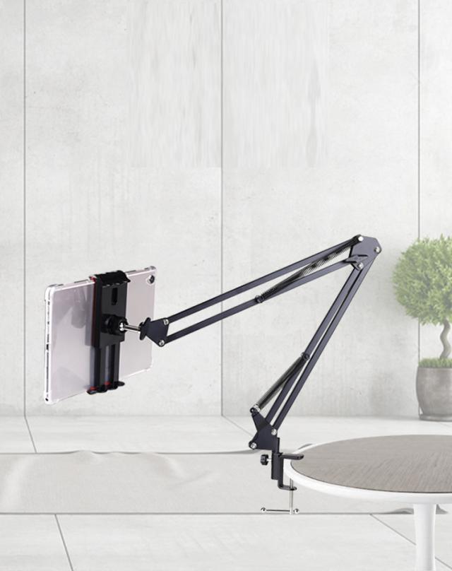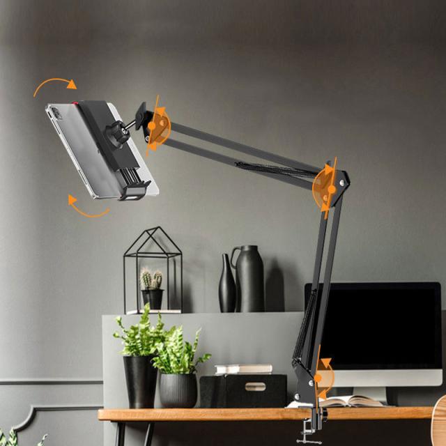 タブレットスタンド 寝ながら iPadスタンド スマホスタンド 折り畳み式 自由角度調整 卓上スタンド 360°回転 アームスタンド 縦横両対応 テレワーク オンライン会議 授業