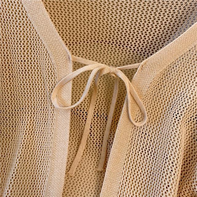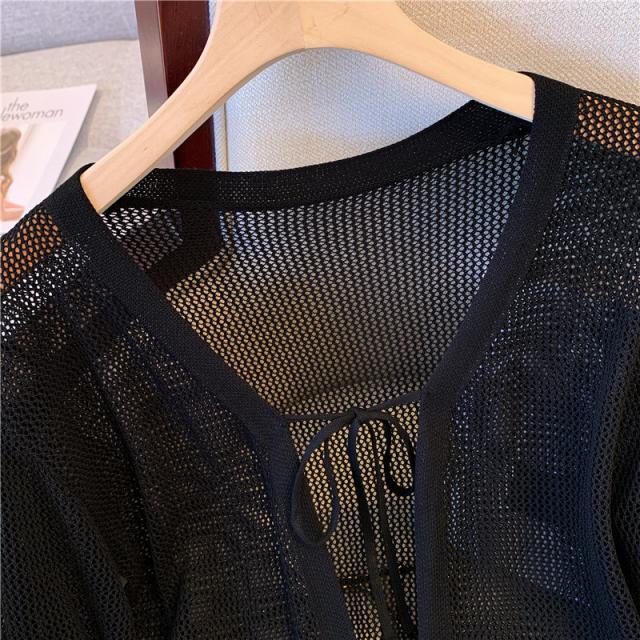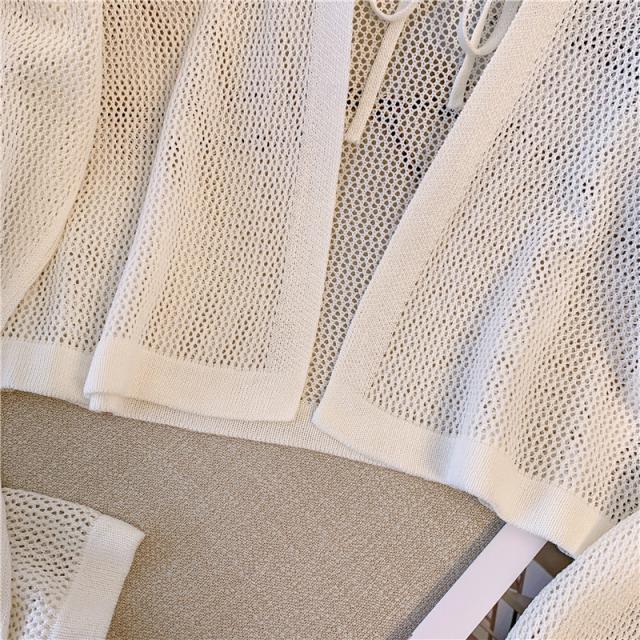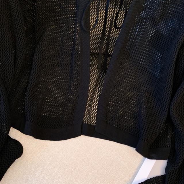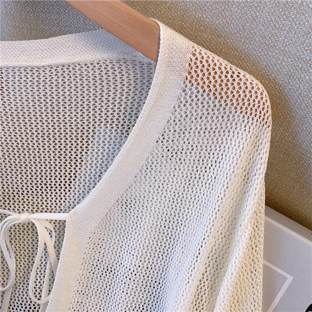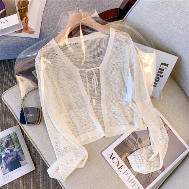 カーディガン 前後2WAY ストライプ メッシュ ショート丈 サマーカーディガン 長袖 透かし編み 可愛い コーディガン お洒落 羽織り ボレロ 冷房対策 春夏