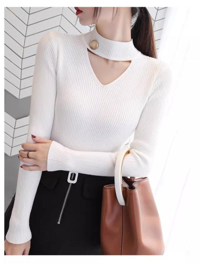 レディース ニットセーター タートルネック Vネック トップス 春 秋 冬 長袖 ブニット 胸開き セーター インナー プルオーバー カットソー ストレッチ 着痩せ 通勤 デート お出掛け 無地 暖かい