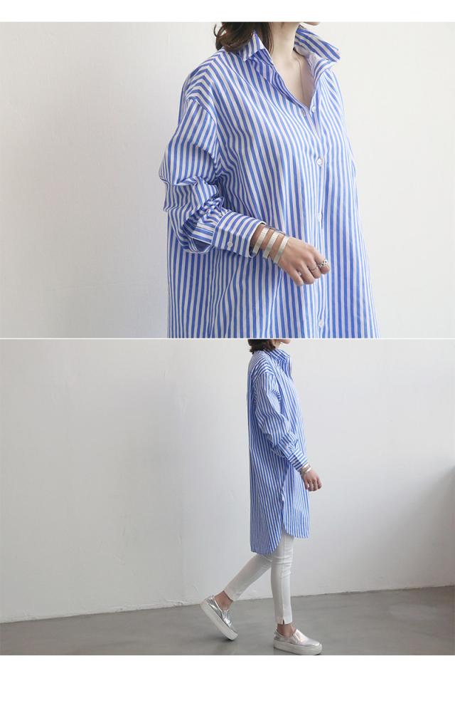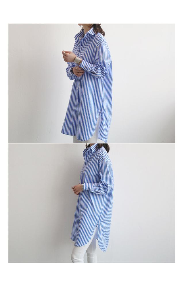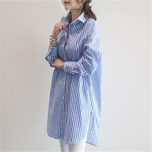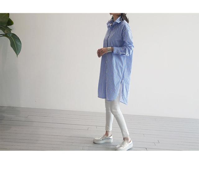 トップス レディース ブラウス チュニック ロング丈 体型カバー ストライプ シャツ 長袖 大人 おしゃれ 重ね着 春 夏 秋 冬