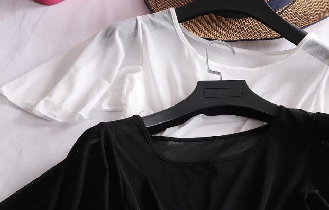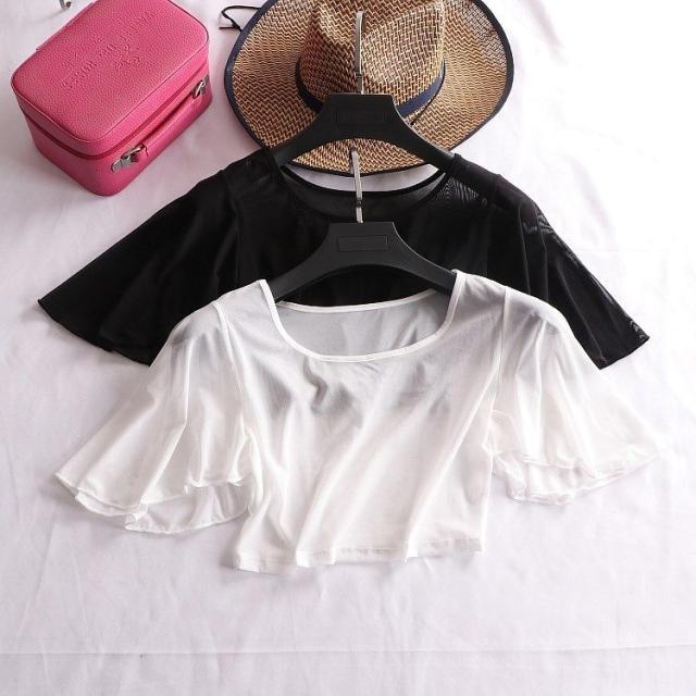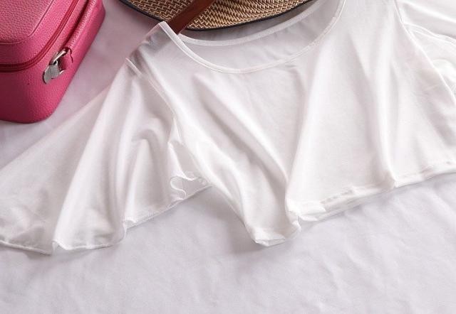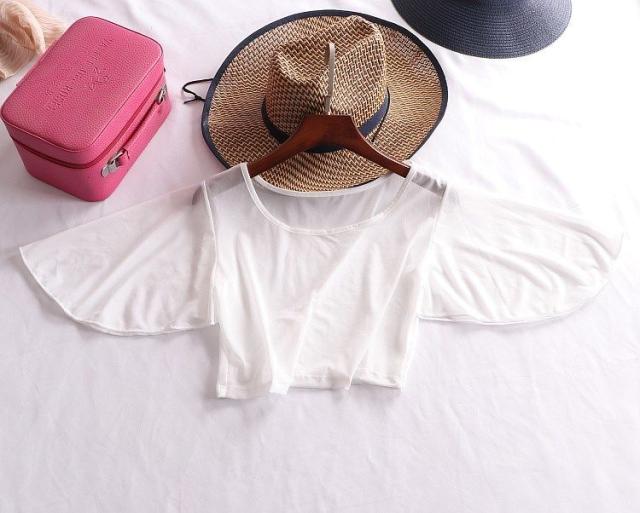 付け袖 重ね着 つけ袖 二の腕カバー 夏 インナー 半袖 フリル袖 付け袖 トップス フリル レース レイヤード 体型カバー 着痩せ 透け感 細見え 振り袖 フレアスリーブ