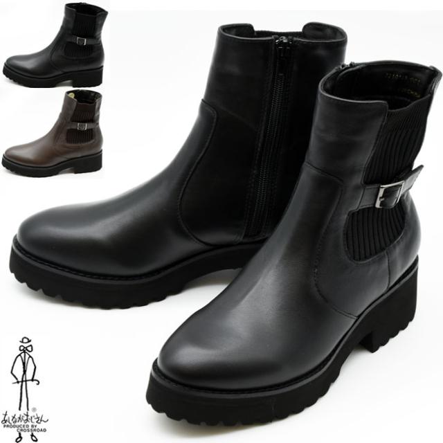 あしながおじさん サイドゴアブーツ ショートブーツ 本革 レザー ニットブーツ