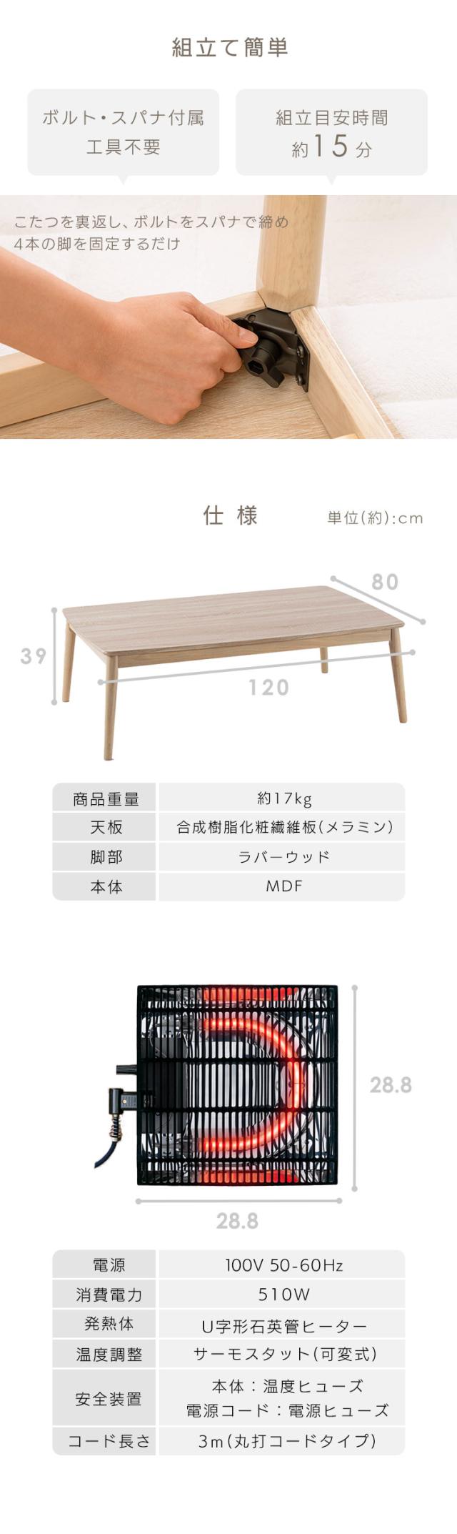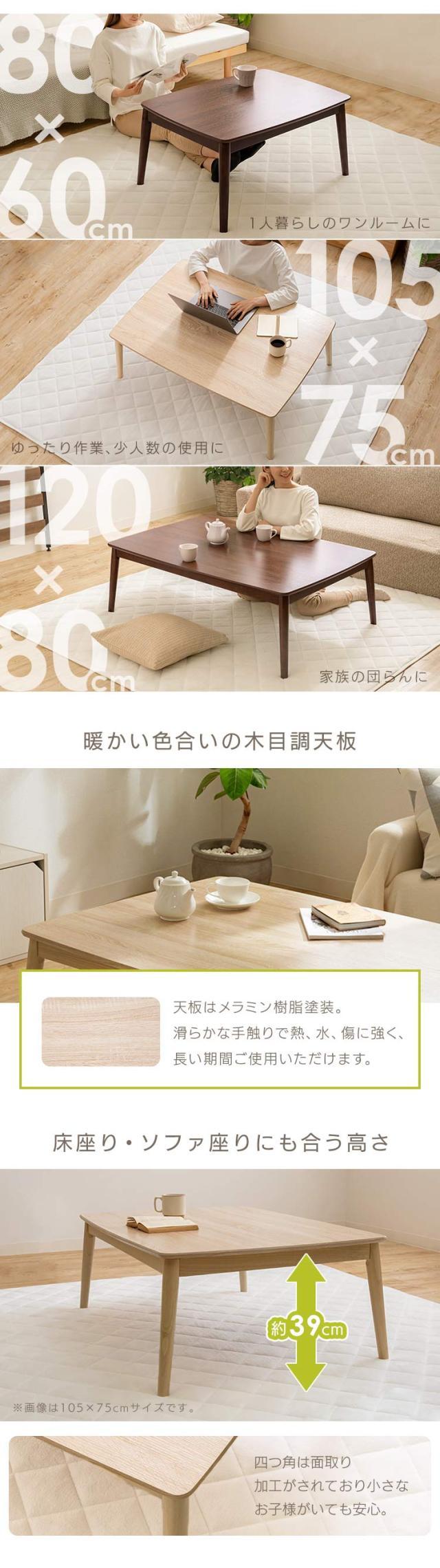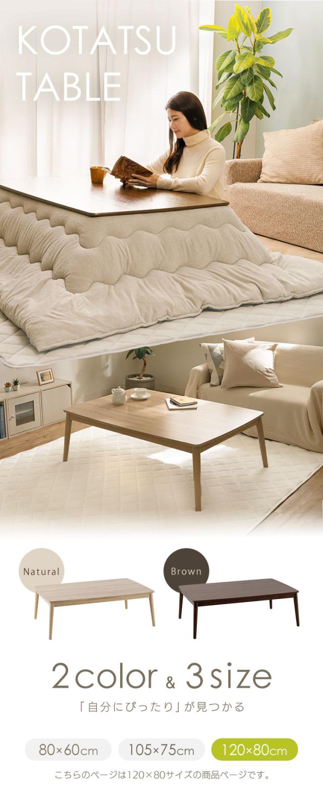 こたつテーブル 丸脚デザインこたつ 120×80 コタツ 丸あし リビングテーブル 長方形 ファミリー シンプル 省エネ オールシーズン 送料無料