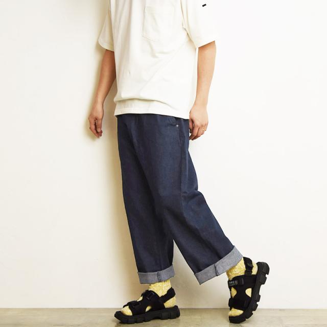 Leeよりワンサイズフィットの画期的なパンツが登場しました。サイズが一つしかないのでサイズ選びが不要となっており、サイズレンジはXSからXXLまでカバーします。これ1本でワンマイルウエアとして、家族でも、体格の異なる友達ともシェアが可能です。その秘密はウエストの左右に配したバンドッジャスター。スピンドル(紐)に比べ、幅広のベルト部は強い保持力を発揮し、簡単に片手で調整できます。シルエットはモモ周りに適度なゆとりを持たせながら、膝から裾にかけて細くなるテーパード。キレイ目にもカジュアルにも対応する優秀な現代版ワークデニムです。