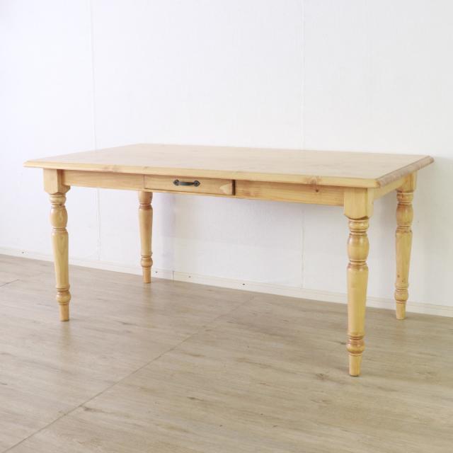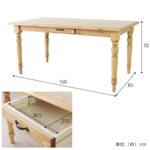ダイニングテーブル 4人掛け 天然木 カントリー 引き出し付き 幅150cm ( 無垢 北欧 パイン材 木目 木製 テーブル 食卓 ダイニング ナチュラル ホワイト 白 装飾 脚 ヴィンテージ調 収納 )