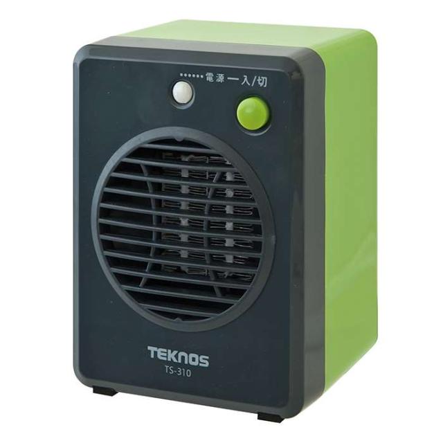 ミニセラミックファンヒーター 300W 温風 暖房 補助暖房 季節家電 コンパクト グリーン 廊下 トイレ キッチン テクノス TS-311