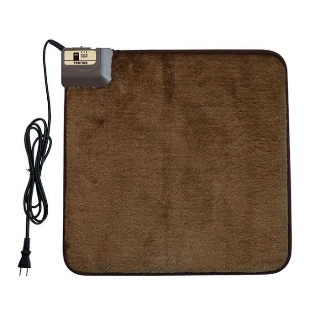 一人用に便利で経済的なコンパクトサイズ。強弱切換え付。吸湿発熱素材”テクノヒート”であたたかく上質な肌触り。 【仕様】 ● 消費電力:36W/強運転、素材:ポリエステル100%● 吸湿発熱テクノヒート● 表面温度:52℃● 電気代:約0.6円/時● サイズ:45×45cm● 色:ブラウン