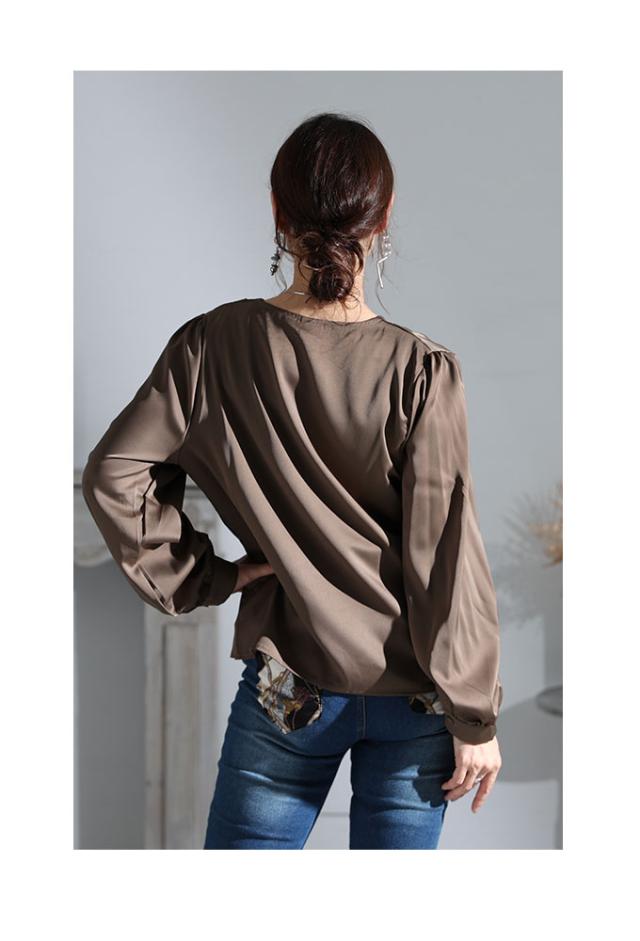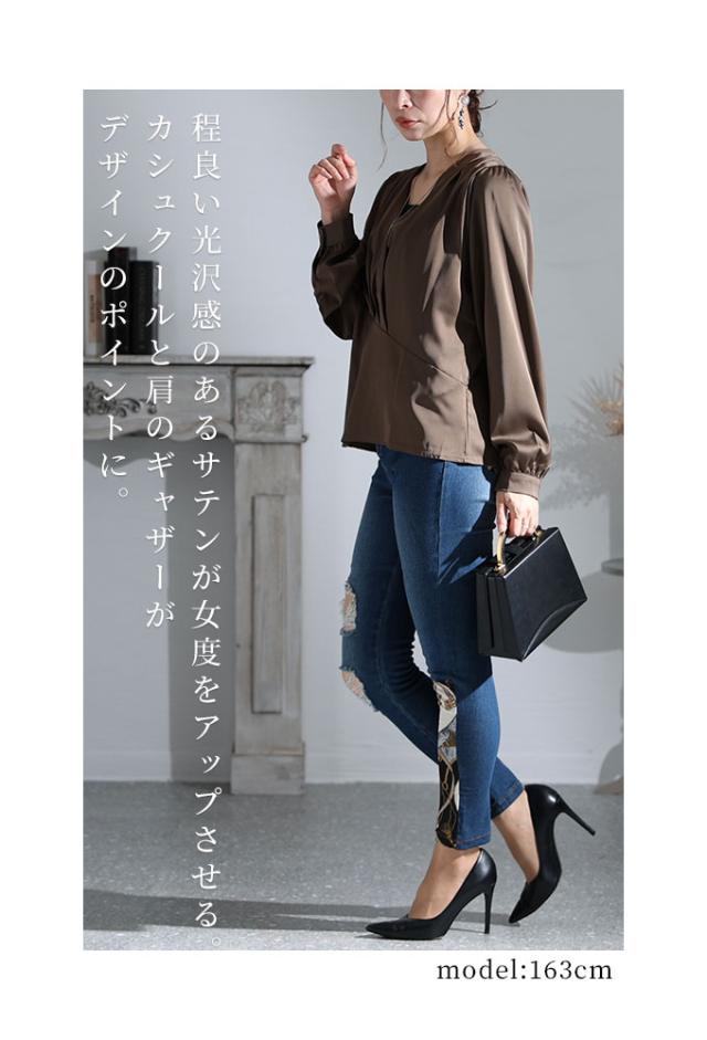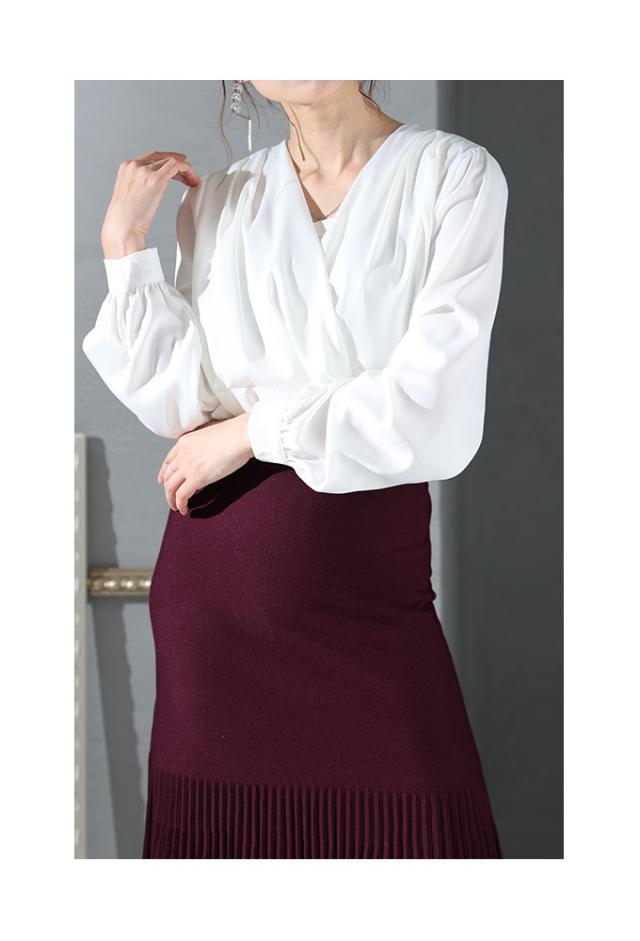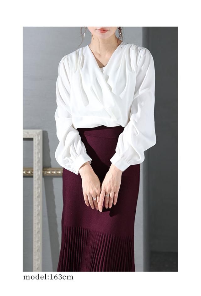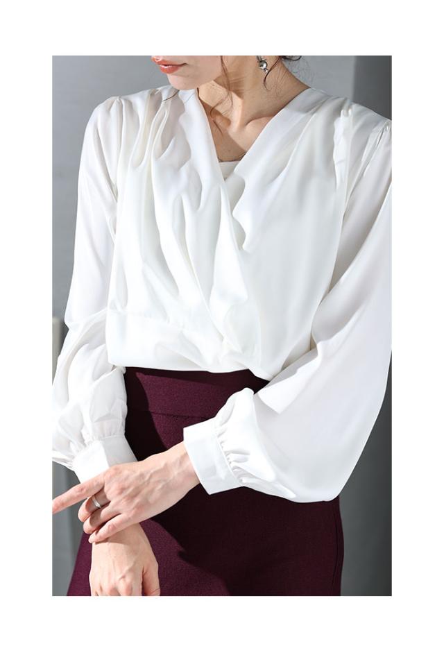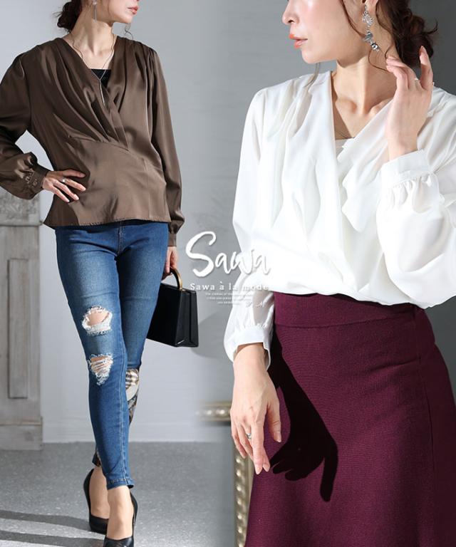 冬新作 女度上がるカシュクールブラウス レディース トップス シャツ ミディアム Vネック 無地 長袖 仕事着 ホワイト 白 ブラウン 茶 春 春服 秋 秋服 冬 冬服 30代 40代 50代 60代 サワアラモード sawaalamode otona 大人 kawaii 可愛い 洋服 かわいい服 sawa-8881