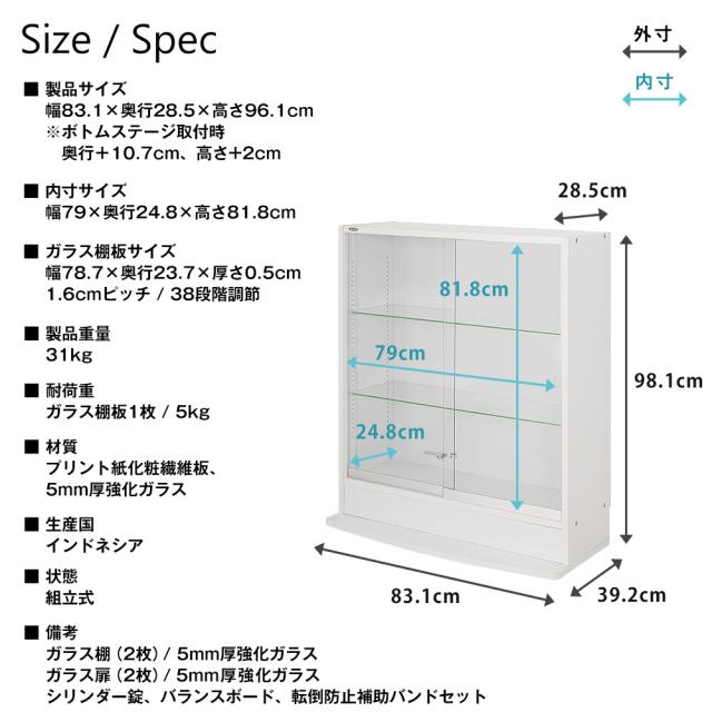 備考 | ガラス棚(2枚)/5mm厚強化ガラス、ガラス扉(2枚)/5mm厚強化ガラス、シリンダー錠、バランスボード、転倒防止補助バンドセット |