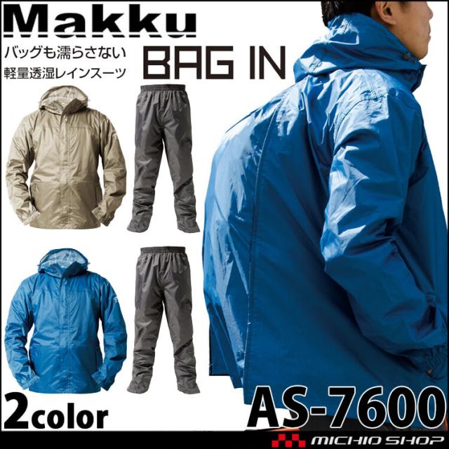 Makku マック アジャストマックバッグイン AS-7600 作業服 レインスーツ 雨合羽 雨具 上下セット