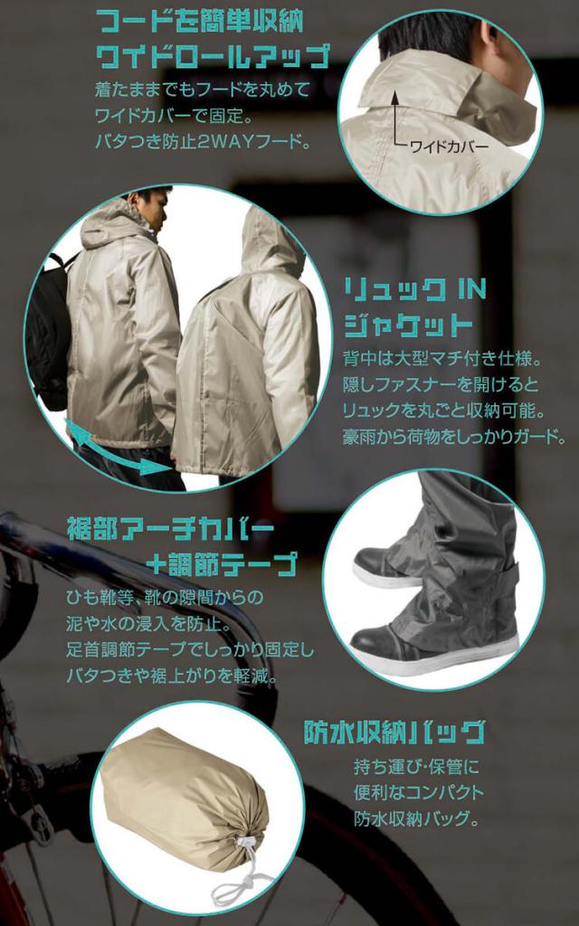 ・ヘルメット使用時にフードを丸めてワイドカバーで固定が可能