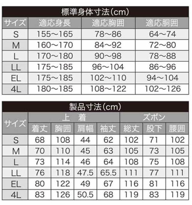 サイズ:S・M・L・LL・EL・4L